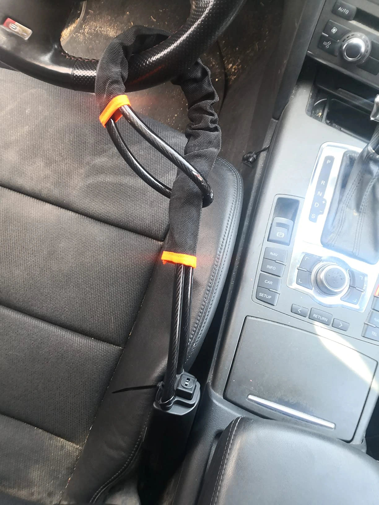 TITANBLOQ™ es el futuro de los antirrobos para coche: sin barras voluminosas ni instalaciones complicadas. Simplemente envuélvelo alrededor de tu volante y fíjalo al enganche del cinturón de seguridad para obtener una protección instantánea de nivel militar.